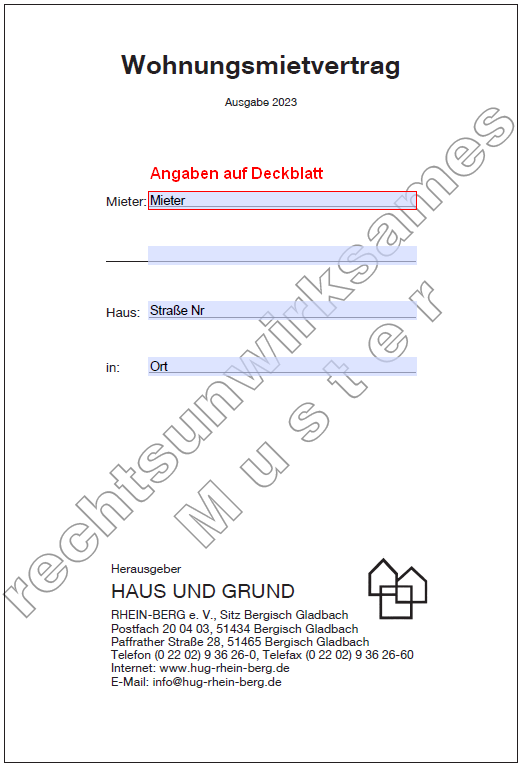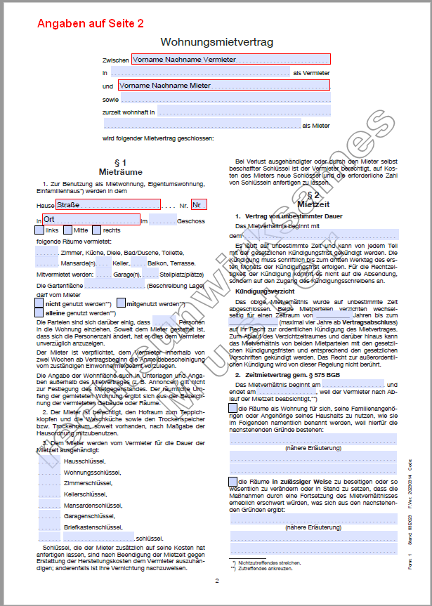 Die Eingaben in diesem Formular werden in den Mietvertrag übernommen und können anschließend NICHT mehr korrigiert werden.
